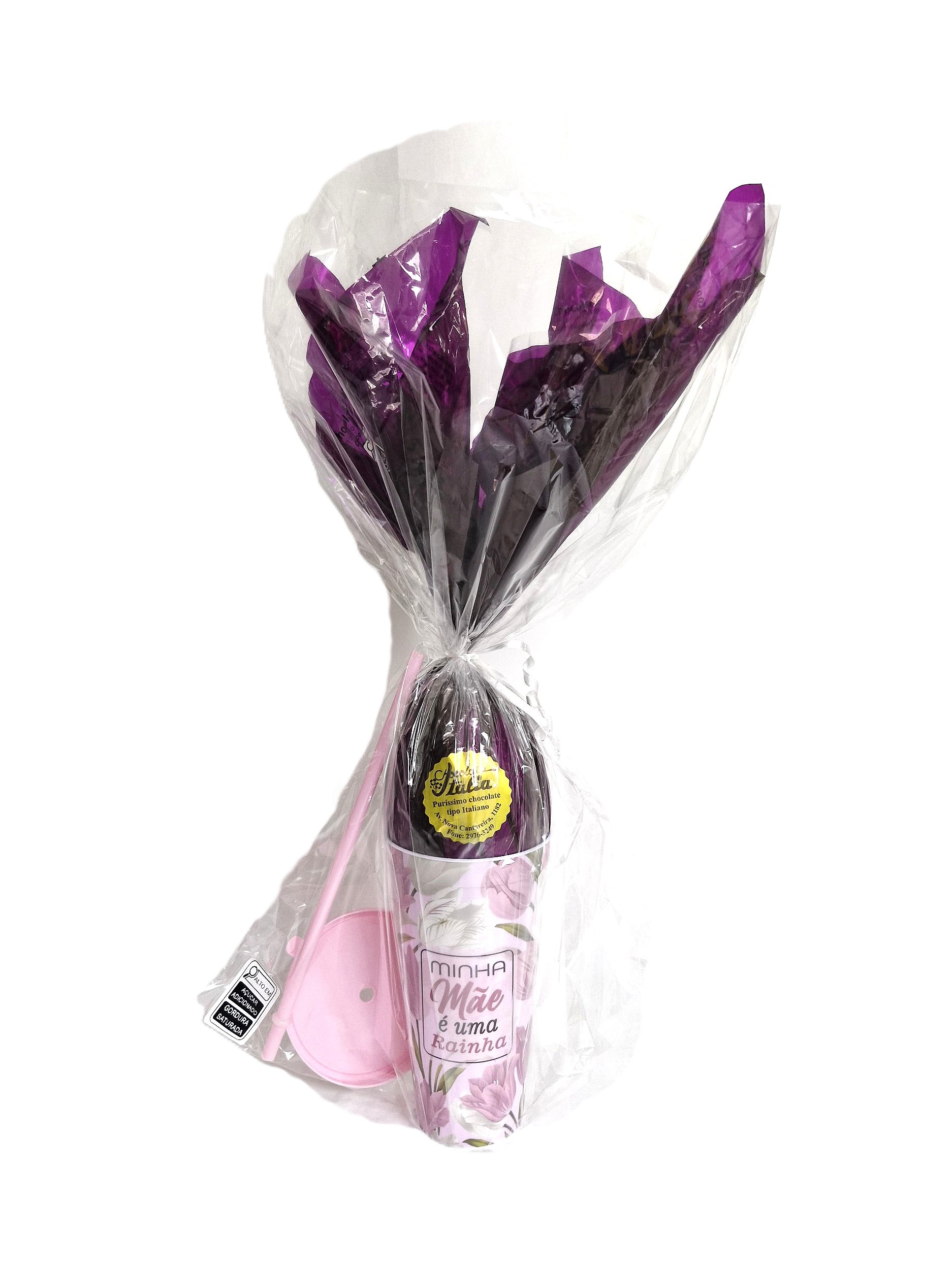 Ovo de Páscoa de 180 g acompanhado de copo com canudo com frase MINHA MÃE É UMA RAINHA.