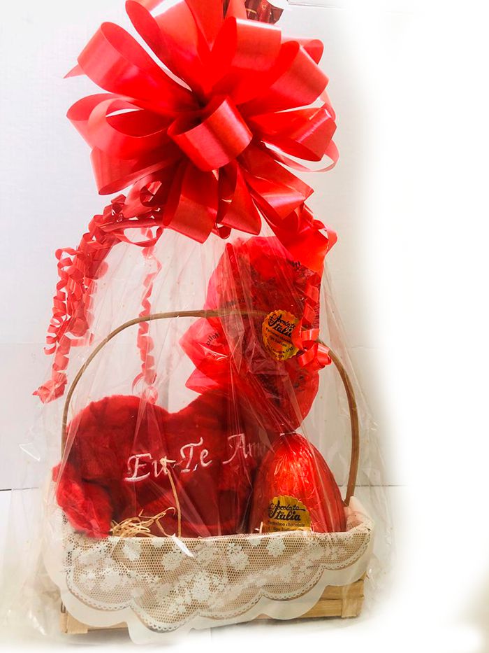 Cesta Amorzinho c/ 1 Coração de Pelúcia e 1 Ovo de 180g ao Leite