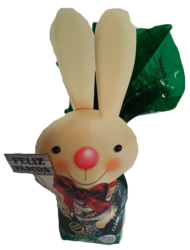 Ovo de 400g com embalagem temática de coelho Abraçadinho.