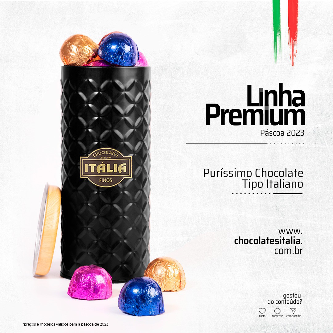 Chocolates Itália Com a missão de trazer o verdadeiro e delicioso sabor do chocolate por preços realmente justos, a Chocolates Itália vem fazendo parte desde 1987 na vida de muitas pessoas, clientes fiéis que acompanham desde o começo a nossa história. ​
