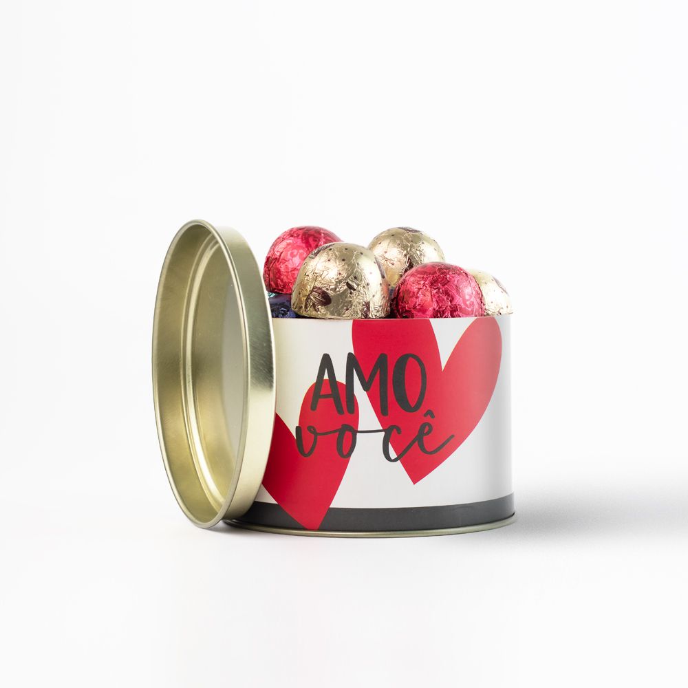 Lata Redonda Branca com 10 bombons truffados sortidos com 174g.